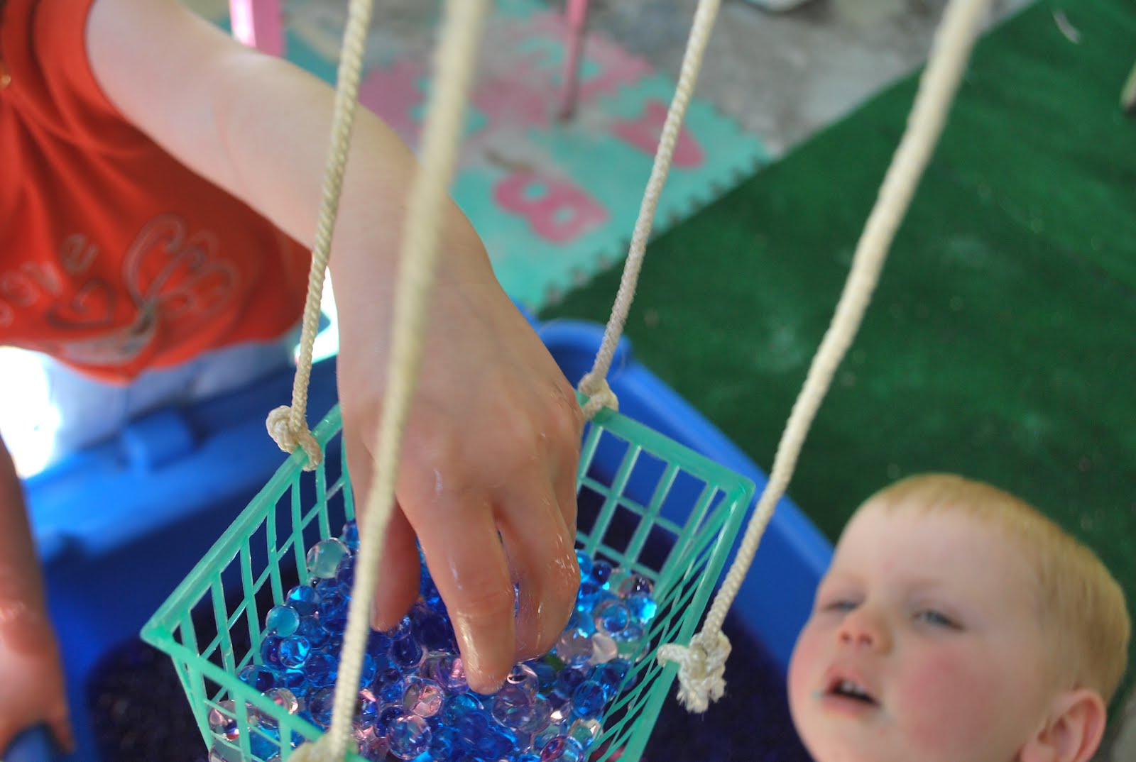 I have a basket hanging for our slime exploration it worked great for the water beads too though